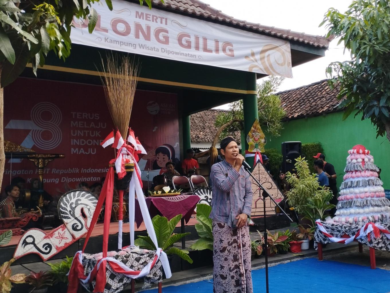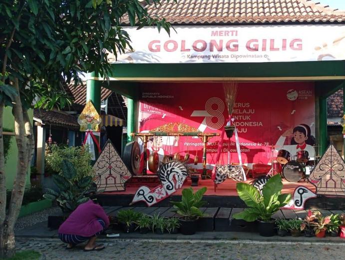 Dalam rangka penguatan daya tarik kampung wisata Dipowinatan diselenggrakanlah secara rutin sebuha upacara adat dan tradisi yang dinamakan merti golong gilig. Upacara adat dan tradisi merti golong gilig memiliki makna dan nilai filosofis dalam rangka memperbaharui semangat warga dan menyatukan niat untuk manunggal dalam karsa, cipta, dan karya untuk menjalani kehidupan sehari hari dan membangun kampung menjadi sebuah lingkunagn yang nyaman untuk menjalani kehidupan sehari hari bagi warga yang tinggal didalamnya. Upacara adat merti golong gilig dilaksanakan masyarakat setiap tanggal 18 agustus mulai siang hari hingga menjelang maghrib. Prosesi upacara adat dan tradisi merti golong gilig diawali denagn arak arakan tokoh masyarakat dengan membawa ikatan lidi menuju titik pusat dilaksanakannya upacara merti golong gilig dengan dikawal oleh anggota bregodo dipo satrio.
