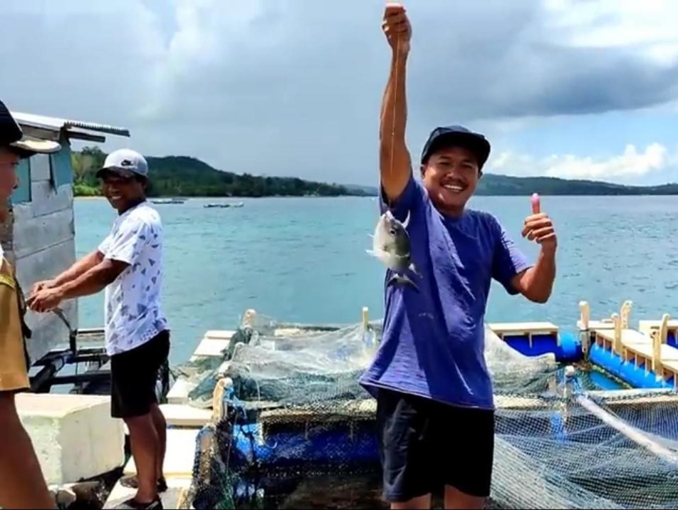 Memancing ikan Bobara dalam keramba