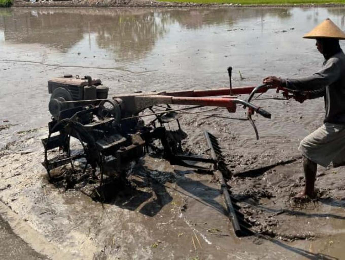 5. Membajak Sawah secara Tradisional.