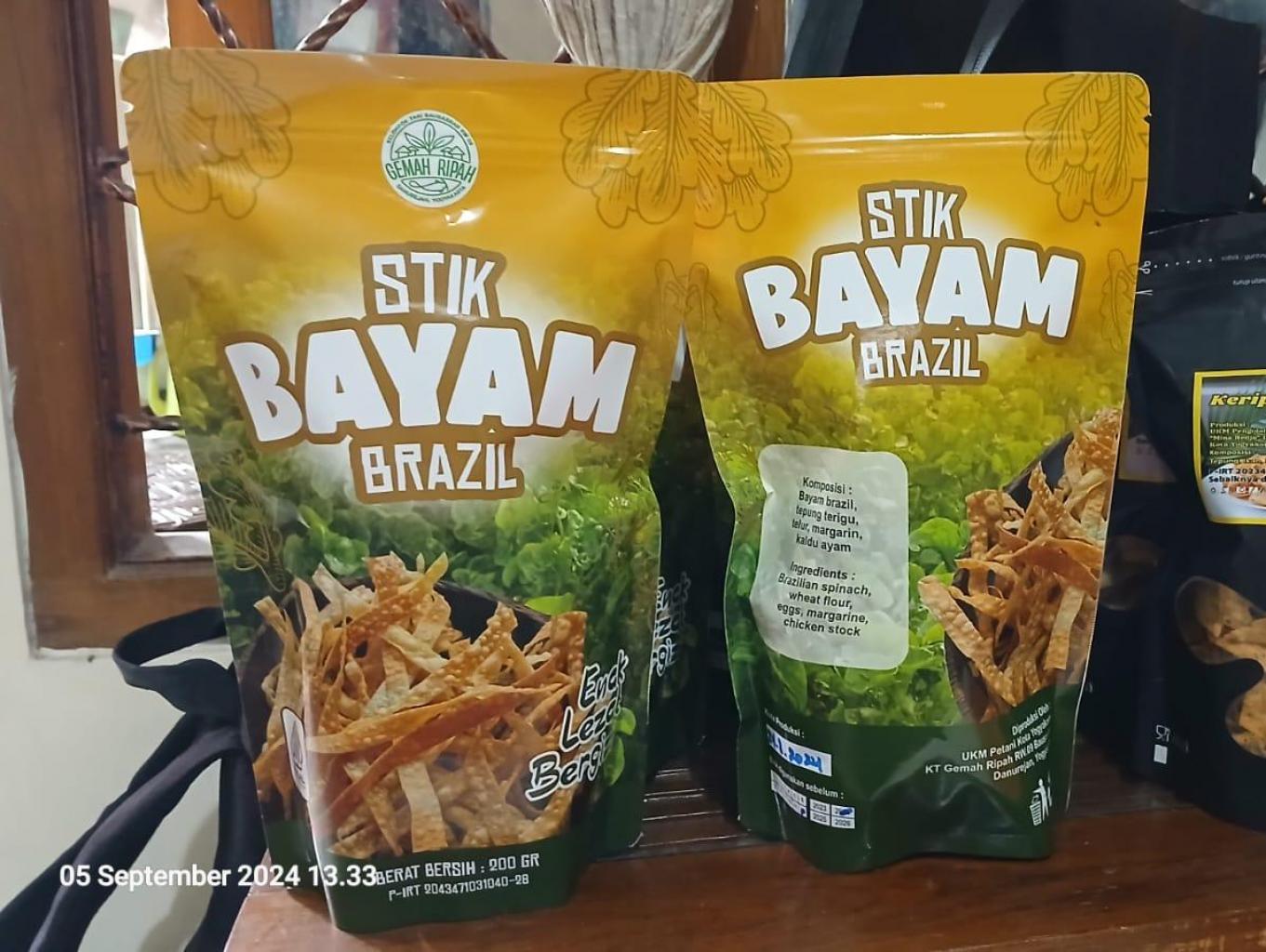 Stik Bayam Brazil dan Ikan adalah camilan sehat yang terbuat dari perpaduan bayam Brazil segar dan daging ikan berkualitas. Teksturnya renyah di luar namun lembut di dalam, menjadikannya pilihan lezat sekaligus bergizi. Bayam Brazil dikenal kaya akan antioksidan, zat besi, dan vitamin A yang baik untuk menjaga kesehatan mata, meningkatkan daya tahan tubuh, serta membantu regenerasi sel. Sementara itu, kandungan protein dan omega-3 dari ikan berperan penting dalam mendukung pertumbuhan, menjaga fungsi otak, serta menyehatkan jantung. Dengan rasa gurih alami dan manfaat gizi yang lengkap, Stik Bayam Brazil dan Ikan cocok dinikmati oleh semua usia sebagai camilan sehat setiap hari.